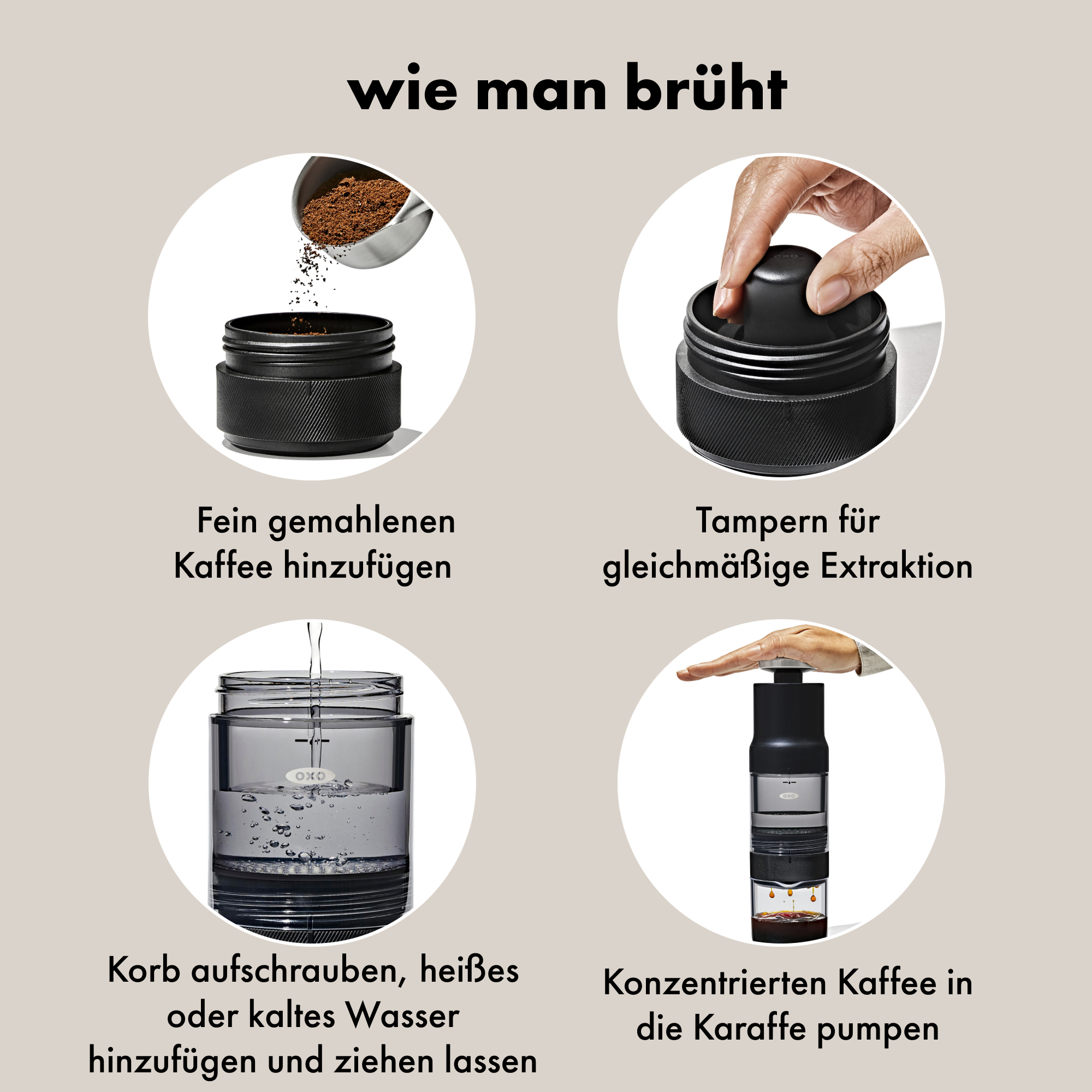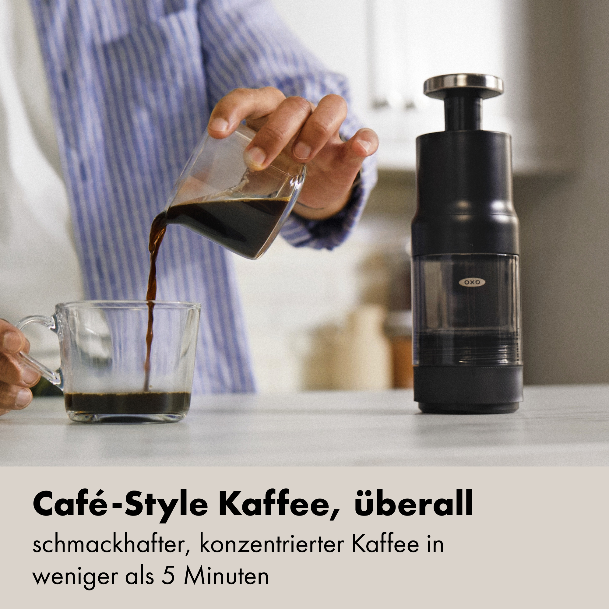 Wir haben den Rapid Brewer entwickelt, damit guter Kaffee überall gelingt. In rund 2 Minuten (heiß) oder 5 Minuten (kalt) brühen Sie eine kräftige Kaffeekonzentration, die Sie im Verhältnis 1:2 oder 1:3 mit Wasser oder Milch aufgießen. Der integrierte Edelstahlfilter spart Papier, der Rainmaker‑Duschkopf verteilt das Wasser gleichmäßig und der Tamper ebnet das Kaffeebett – für eine ausgewogene Extraktion. Nach dem Pressen wandern Wasserbehälter und Karaffe in die Spülmaschine (die Pumpe bitte von Hand reinigen). Wasserbehälter und Karaffe bestehen aus Tritan™ Renew mit 50 % recyceltem Anteil (massenbilanzbasiert). Passt perfekt zusammen: Mit unserer Manuellen Kaffeemühle mahlen Sie frisch und brühen anschließend direkt im Rapid Brewer auf.